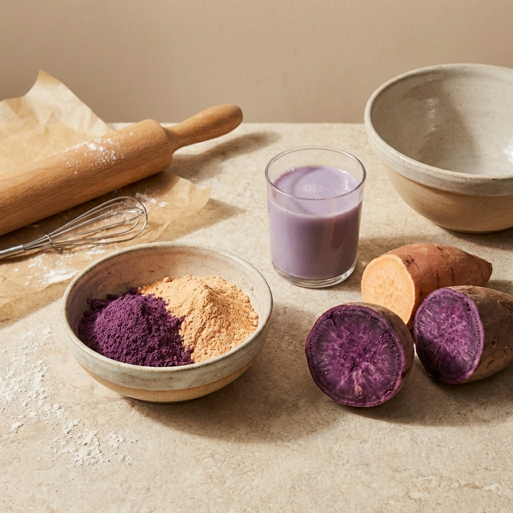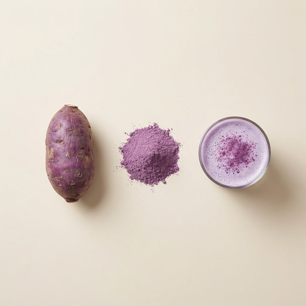 Chez UBEVIO, nous la transformons en une poudre fine et 100 % naturelle, sans arômes artificiels, pour créer des boissons et recettes aussi belles que délicieuses.